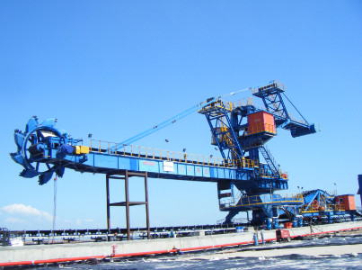 臂式斗輪堆取料機可實現(xiàn)跨越料堆,堆取礦石、原煤等多種散狀物料,實現(xiàn)倉儲物料連續(xù)作業(yè)的大型裝卸設(shè)備。主要應(yīng)用于電力、冶金、煤炭、建材、港口和化工等行業(yè)的強調(diào)倉儲沒有混勻要求的條形儲料場。