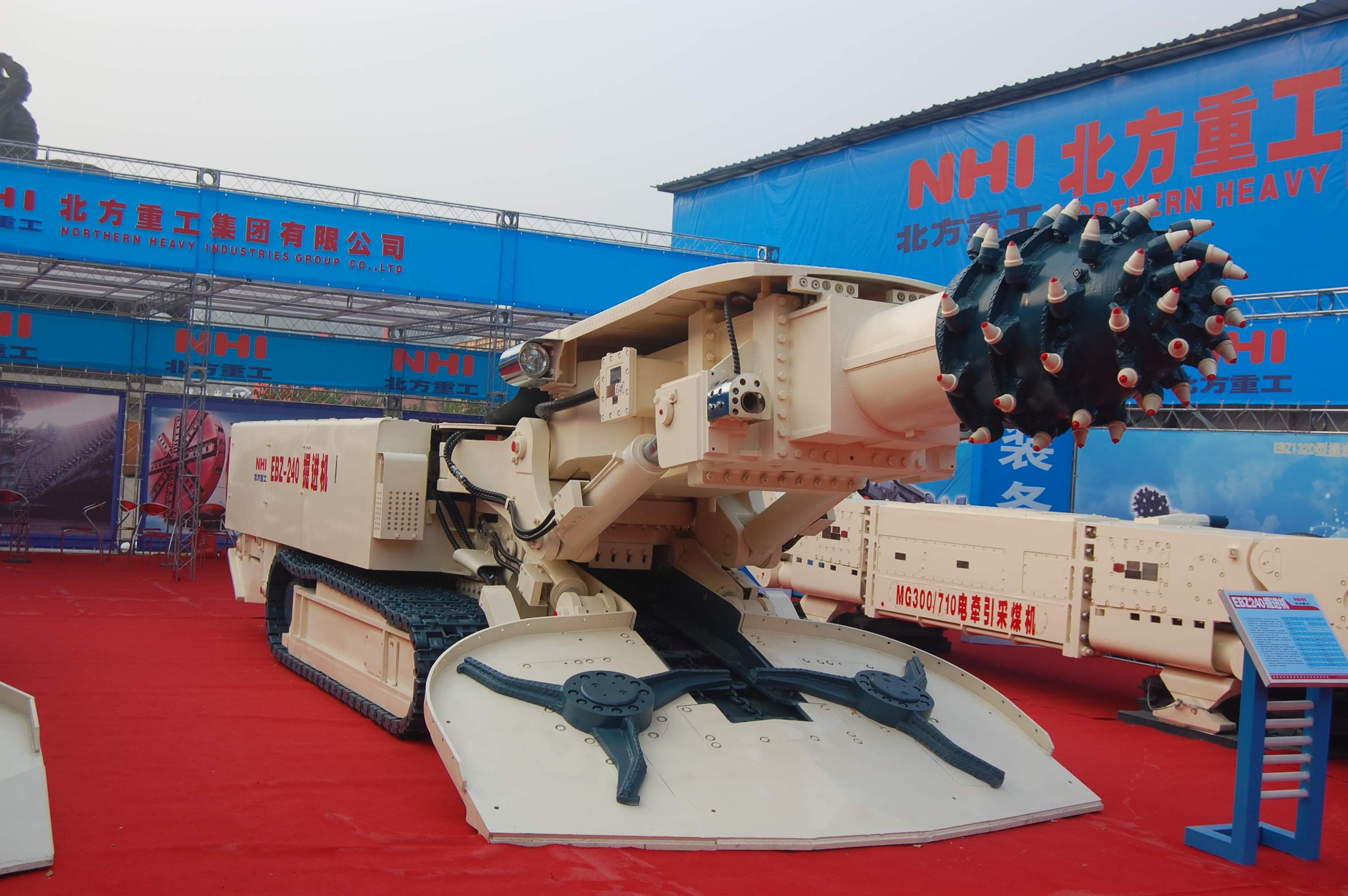 我司是國(guó)內(nèi)較早設(shè)計(jì)生產(chǎn)掘進(jìn)機(jī)的企業(yè)之一,多年來(lái)為國(guó)內(nèi)各大煤礦生產(chǎn)廠家提供了優(yōu)良的產(chǎn)品。現(xiàn)我公司掘進(jìn)機(jī)已形成系列化生產(chǎn),機(jī)型為EBZ120、EBZ132、EBZ160A、EBZ160A(矮)、EBZ200、EBZ220、EBZ240、EBZ260、EBZ320、EBH360。其中2012年我公司自主研發(fā)的EBH360橫軸式掘進(jìn)機(jī),其工作性能指標(biāo)達(dá)到(或超過(guò))同規(guī)格掘進(jìn)機(jī)的專業(yè)水平,控制上達(dá)到專業(yè)水平。其中橫軸式掘進(jìn)機(jī)在結(jié)構(gòu)設(shè)計(jì)和制造上都有了新的突破,攻克了在切割結(jié)構(gòu)傳動(dòng)問(wèn)題上的難關(guān),而且實(shí)現(xiàn)了行走兩種速度的調(diào)動(dòng),同時(shí)在液壓系統(tǒng)上實(shí)現(xiàn)了電液兩種控制功能,在電氣系統(tǒng)上實(shí)現(xiàn)了遙控控制及仿形切割功能等,其技術(shù)水平在國(guó)內(nèi)綜掘設(shè)備研發(fā)領(lǐng)域占有較高地位。