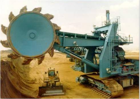 斗輪挖掘機(jī)是采、運(yùn)、排連續(xù)開采工藝中完成采掘工作的重要設(shè)備,用于開采量大,服務(wù)年限長(zhǎng)的大型工程,特別適合在露天礦、大型土方工程等應(yīng)用。斗輪挖掘機(jī),可連續(xù)工作,效率高、能耗低。用斗輪挖掘機(jī)剝巖可省去鉆孔、爆破等工藝,并在環(huán)保方面,有效地降低了有害物的排放量。斗輪挖掘機(jī)也可用于賦存條件好、較松軟的礦山的開采。